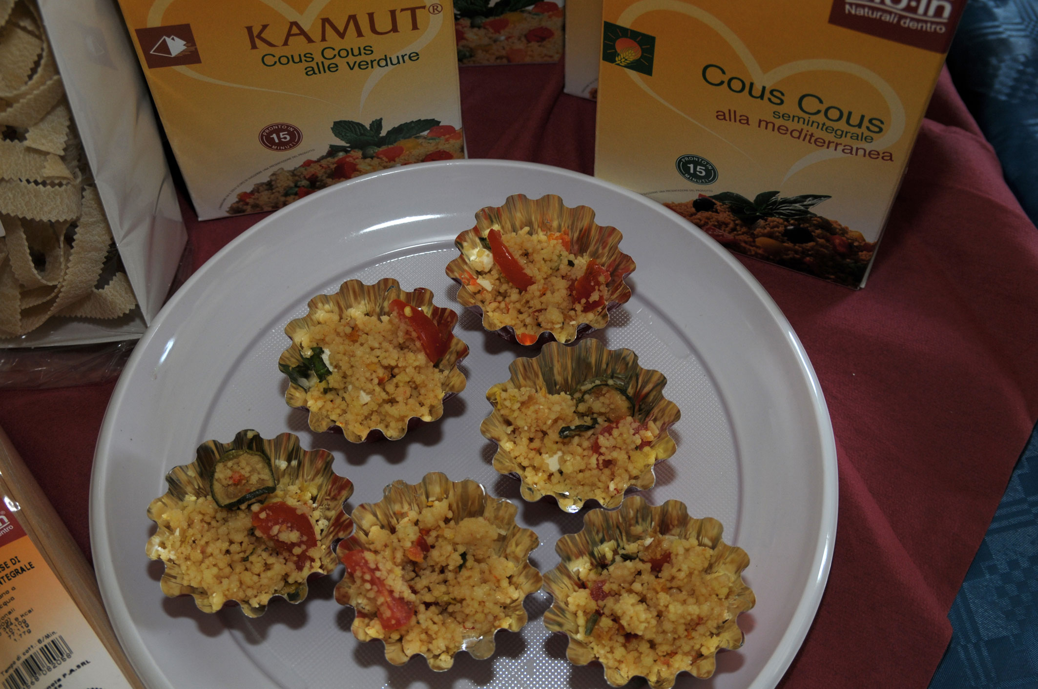 Vicino al banco “franciacortino”, due figure con le quali m’intrattengo piacevolmente – senza retorica, le mie sincere scuse a tutti i produttori presso i quali non sono riuscito a fermarmi – Paola Fabbri, la “produttrice di pasta bio del Delta del Po come lei stessa si è definita (grazie per la dedica Paola …) e Mirco Mariotti dell’Az. Fondo vitivinicola Fondo Luogaccio . Della prima, mi è rimasta impresso l’approccio schietto e solare, oltre ai suoi cous-cous …, del secondo la garbatezza, la serenità nello spiegarti il suo “lavoro” e la scenografia della “stappatura sommersa”, ad evitare che il suo Fortana innaffiasse copiosamente i presenti, ma io berrò la bottiglia acquistata rigorosamente con i lieviti …