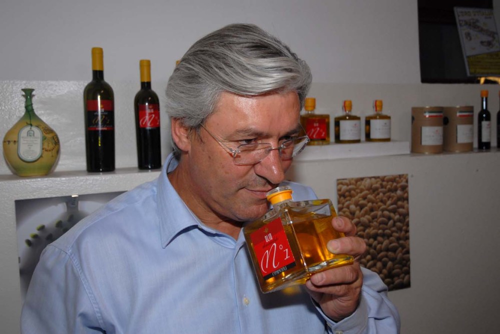 Ma è dell’olio che vogliamo parlare e dalla particolarissima attenzione che ad esso viene qui dedicata. “E’ stato un convegno dell’OMS sull’olio extravergine e sulla sua salubrità a coinvolgermi particolarmente …” Ed è l’inizio degli anni ’80 a vederne le prime produzioni, con l’utilizzo di un frantoio comune voluto da quei produttori, circa una trentina all’epoca, a cui non bastavano – qualitativamente – quelli esistenti. Nacque sull’onda un disciplinare interno che contemplava tutte le fasi di produzione, dalla raccolta sino all’imbottigliamento, con metodiche di controllo gascromatografiche assolutamente all’avanguardia. Coerente con il suo continuo desiderio di ricerca e miglioria, ormai connotato imprescindibile, lascia il gruppo nel 2001 e incontra la realtà che “segna” tuttora la sua produzione: l’olio denocciolato. Intuisce che questa è la dimensione in grado di approdare a quella “fotografia” del territorio, a quella personalità, che rappresentano il suo modo di pensare l’extravergine sotto la spinta della passione che parimenti muove il grande Luigi Veronelli. Come per i vitigni le cultivar, e la denocciolatura, possono essere la chiave di volta per costruire un “nuovo mondo” dell’olio con i monocultivar a segnare le caratteristiche varietali del frutto e i “blend” a caratterizzare in modo del tutto originale un prodotto aziendale.
