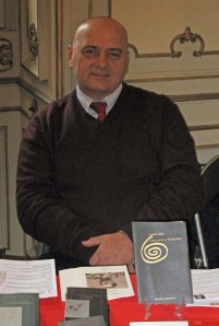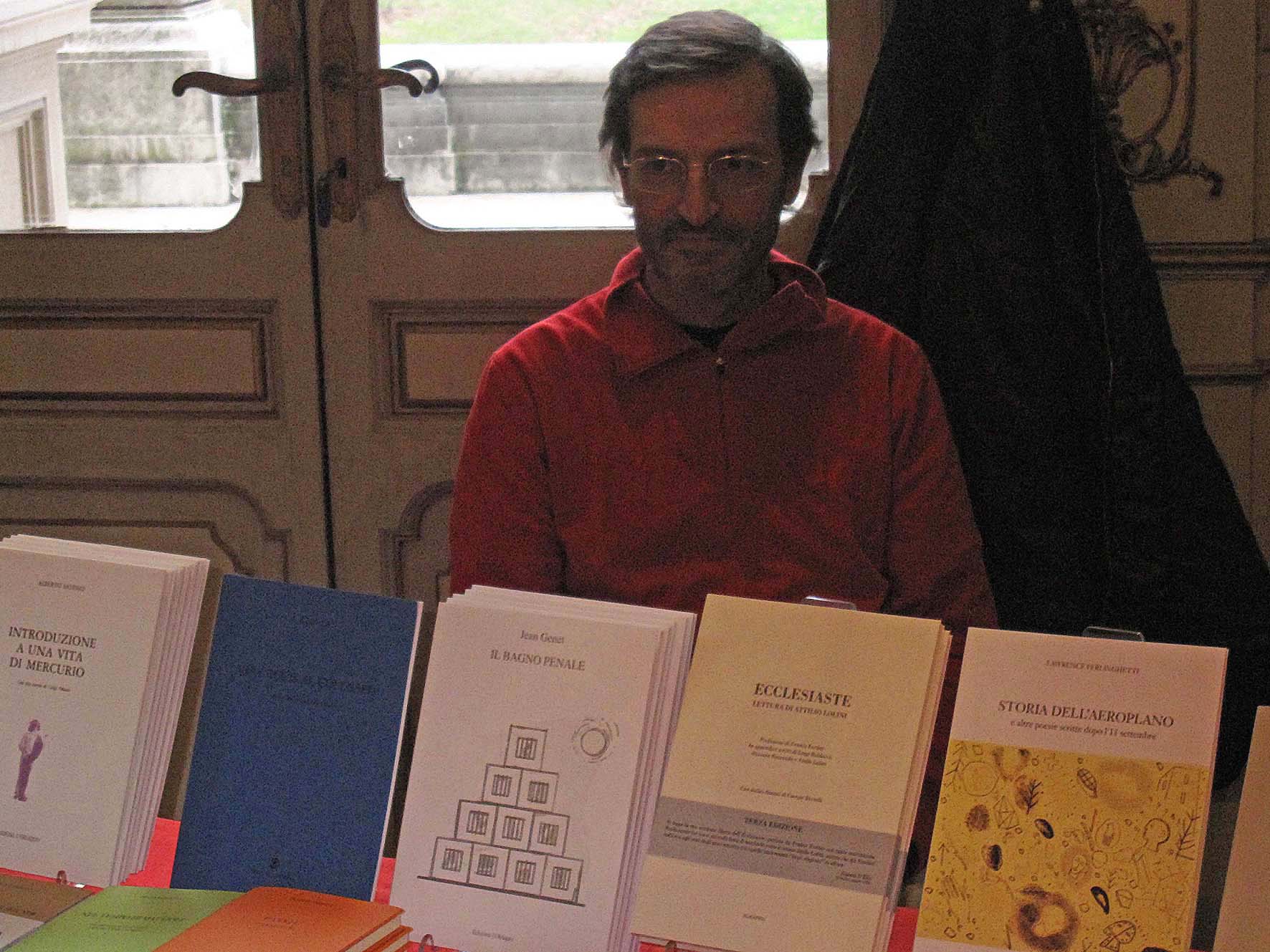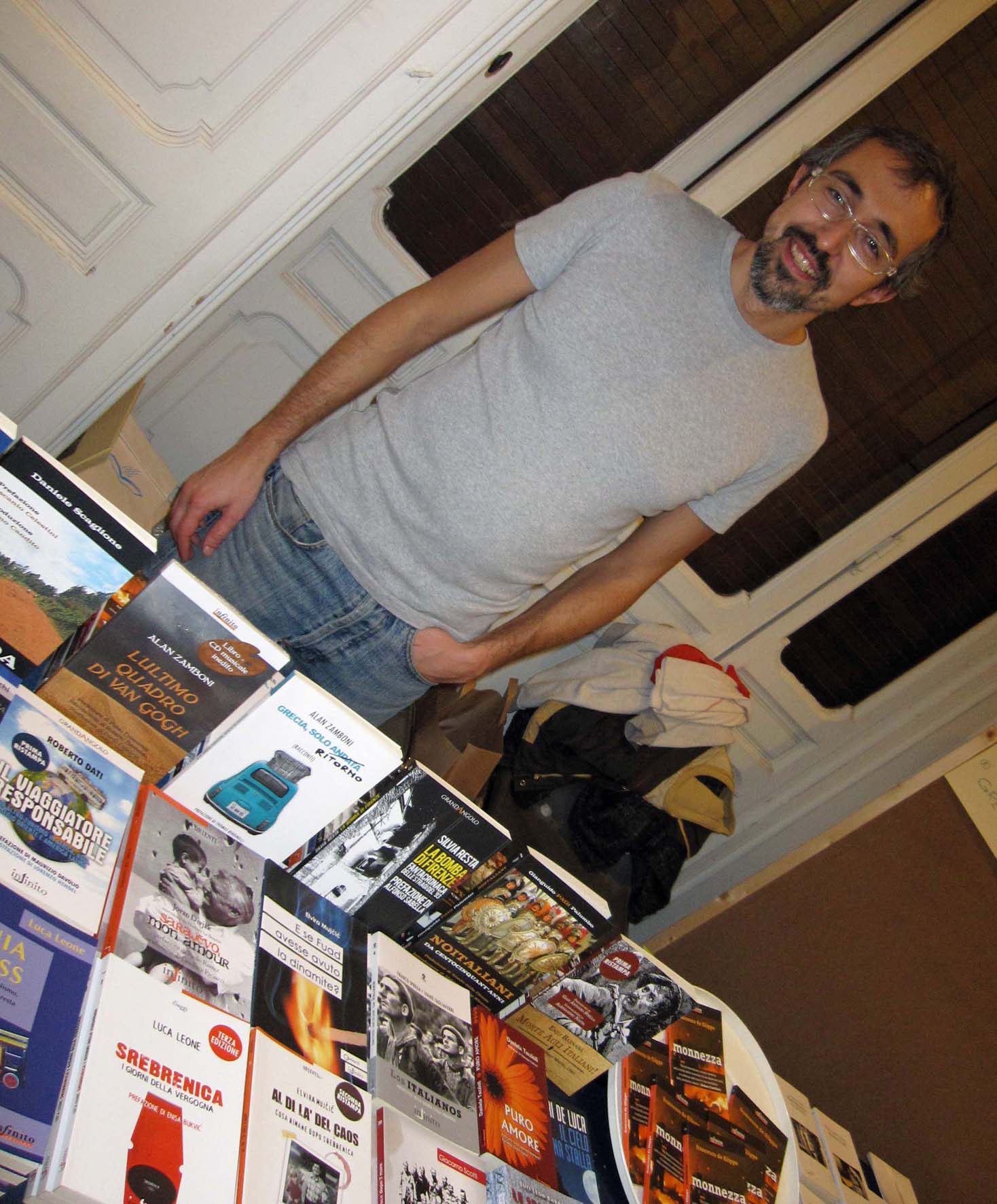 Non potevo farmi sfuggire l’occasione di salutare Alan Zamboni, presente sin dal primo giorno della rassegna e interprete nella serata di sabato 13 dello spettacolo musicale tratto dal suo recente libro – L’ultimo quadro di Van Gogh – recensito in questo blog da Paola Baratto. Ingegnere, scrittore, musicista, Alan ha pubblicato questo libro corredato di CD per i tipi della romana Infinito Edizioni. Di Paola Baratto erano presenti, attraverso la loro produzione, i leccesi Manni Editori. Una citazione per il Leone Verde Edizioni di cui ho apprezzato la collana -Leggere è un gusto -, percorsi gastronomici tra cucina e letteratura.