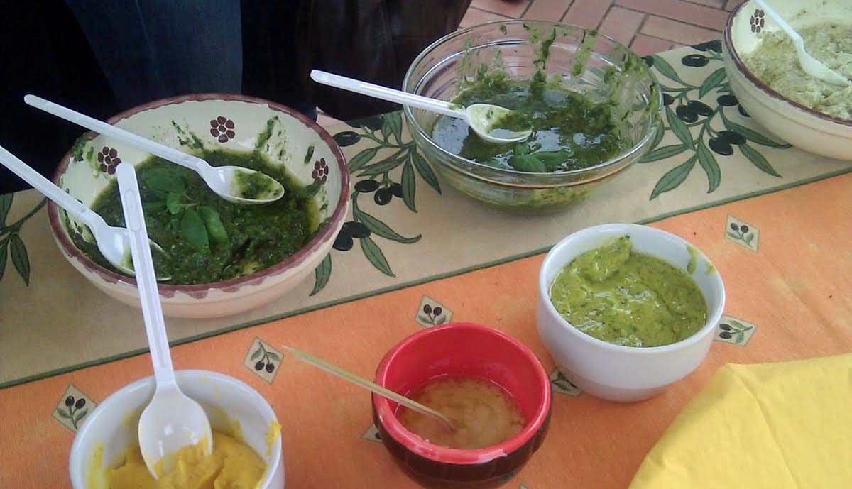 Giancarlo Marabotti è una persona speciale, umile, semplice, genuina e con tanto entusiasmo e voglia di condividere con gli altri le sue passioni. Sono felicissima che abbia accettato il nostro invito, la sua presenza, ha rappresentato un’ importante valore aggiunto al nostro evento ed oltre ad aver imparato a fare il pesto come si deve 🙂 ho avuto il grande piacere di poter degustare le varie salse realizzate al momento da Giancarlo, tutte al mortaio… che dire, una più buona dell’altra.