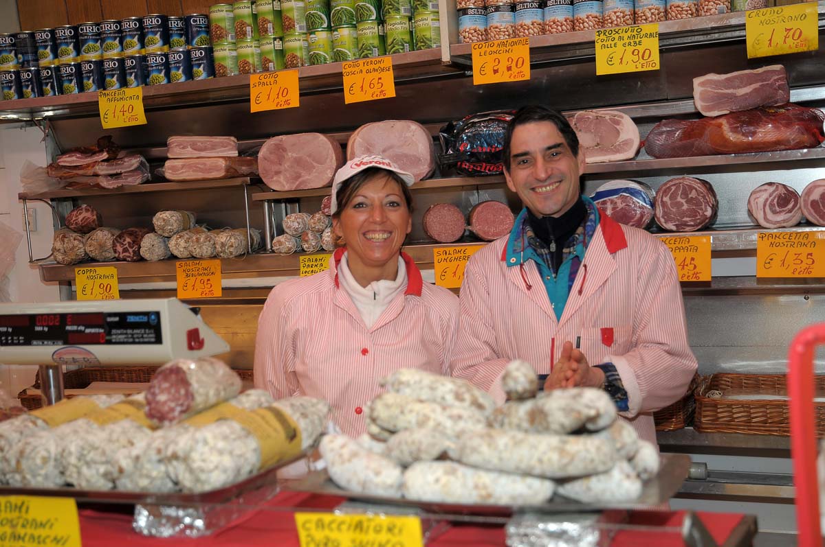 Me la ricordo, eccome, quella vetrina traboccante di carni rigorosamente suine, era una sorta di inno al maiale declinato in un rosa abbondanza. Piedini, braciole, fette di lonza, fegati, rete, codini, carré interi, salami, cotechini, pancette, lardo … Indubbiamente scioccante per un vegano convinto, ma faceva, credetemi, festa. E dentro, se sbirciavi solo un poco, tanta gente da una parte e dall’altra del banco, chi a tagliare, a incartare, a pesare, chi a valutare con occhio attento l’acquisto della giornata. Qualche giorno fa, passando, mi è venuta voglia di entrare, mi sono fermato giusto un attimo per prendere atto che i tempi erano cambiati, che quella opulenza rammentata era ormai lontana.