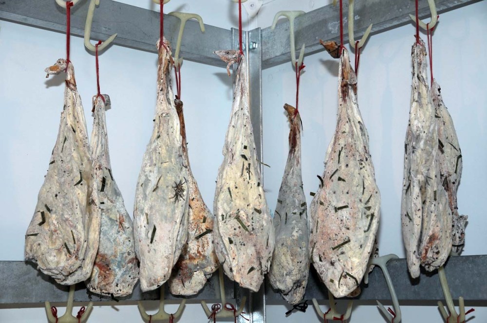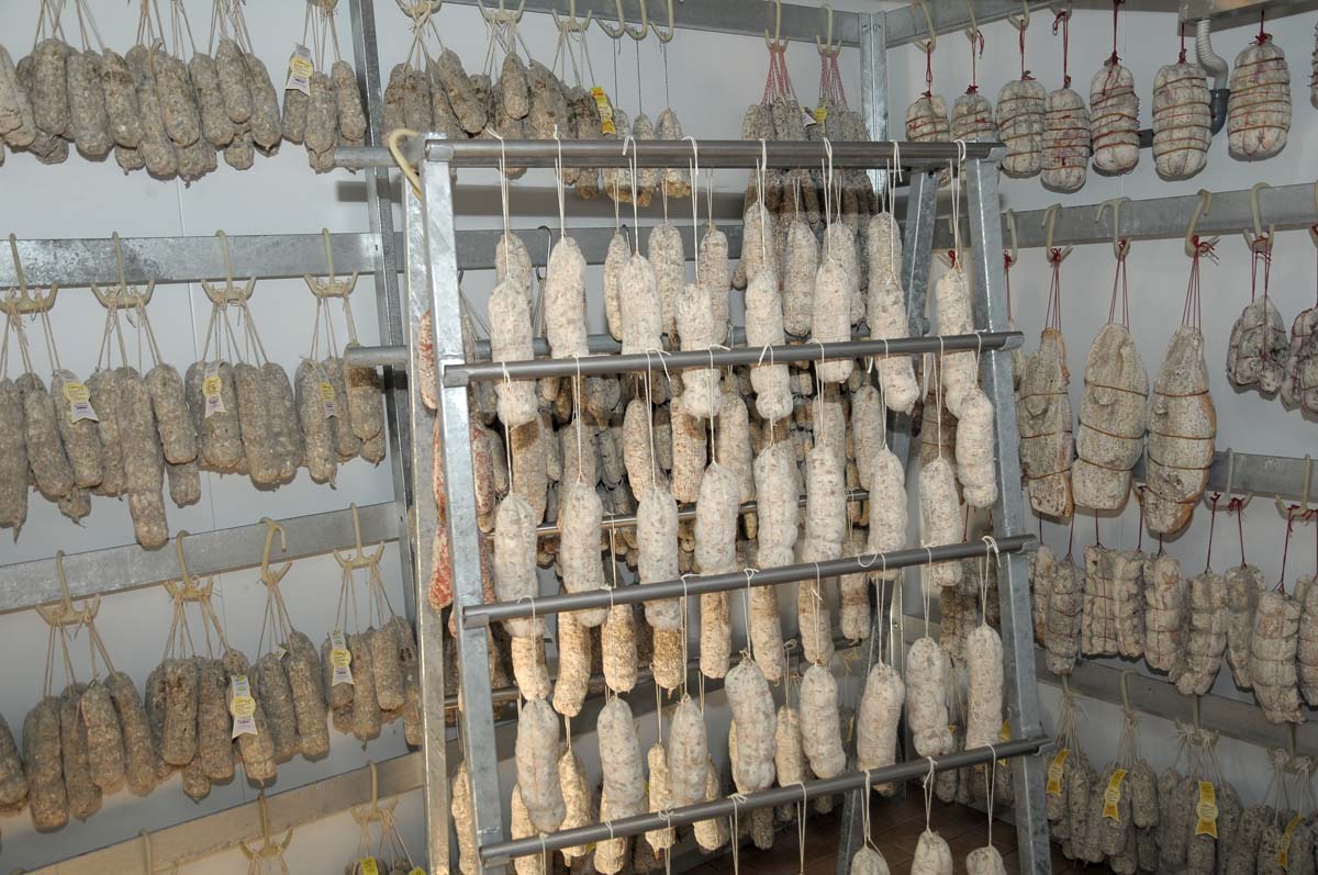 L’elenco di quanto proposto sarebbe lungo, forse anche troppo osserva Federico, compagno con Christian in questa bella gita che ci porta a inerpicarci per i tornanti verso Montecampione. “Abbiamo l’esigenza di utilizzare quanto più possibile dalle nostre bestie” spiega pacatamente Vanni, “La quasi totalità degli animali utilizzati viene da questo territorio e sono di proprietà dell’azienda, affidati ad esperti allevatori perché siano nutriti ed accuditi nel migliore dei modi”. Barbine, pecore, capre, tacchini sono rigorosamente camuni, i cinghiali provengono dalle colline parmensi e sono praticamente tenuti allo stato brado. I maiali vengono ingrassati sino a raggiungere un peso ottimale di 170/180 kg, la giusta maturità per quest’utilizzo. Poi la perizia dell’uomo, la giusta selezione, la rifilatura del grasso qualitativamente non valido, l’utilizzo di aromi tradizionali: ginepro, alloro, rosmarino, il tempo che non vuole costrizioni o compromessi. Ed è così per ogni carne, per ogni taglio: Vanni apre con orgoglio le celle dedicate alle varie tipologie, ed è un tripudio di salami di cinghiale, di suino tagliato a coltello, di asino, ne spalanca un’altra ed ecco violini di agnello, fiocchetti di cinghiale, slinzeghe di manzo, fesette di suino, filettini di “pola”, la tacchinella da queste parti. Il minimo indispensabile di salnitro, sale, affumicature naturali per alcuni prodotti, si associano a quanto già detto per offrire un ventaglio di sapori non comune. Ma tutto questo sarebbe non dico inutile ma diverso se alla base non ci fosse una filosofia semplice e illuminata: “Non facciamo grandi produzioni, ci interessa preparare il necessario per la nostra ristorazione e per chi è in grado di capire quanto realizziamo con tanto impegno”. Lascio per un attimo Vanni per scambiare due parole con Maurizio, sono curioso di sapere com’è nata quest’impresa, “Volevo dimostrare, ci credevo fortemente per primo, come fosse possibile utilizzare, concepire, in modo imprenditoriale una dimensione agricola … Per questo ho viaggiato, ho portato, ad esempio, mio suocero in Trentino, per mostrargli realtà evolute, che abbinano sostenibilità e capacità reddituale. Quello che vedi è un primo passo, abbiamo investito in qualità, realizzeremo un microimpianto all’avanguardia per la produzione di succo di mele e marmellate, vogliamo ottenere il massimo dal frutto, salvaguardarne i profumi, i sapori, non schiacciarlo con inutili eccessi zuccherini”. “Sappiamo che c’è tanto lavoro”, pensate ora a una voce comune, fusione di entrambi, “Non abbiamo particolare fretta, vogliamo anteporre la qualità alla quantità, i giusti riconoscimenti alle vendite”.