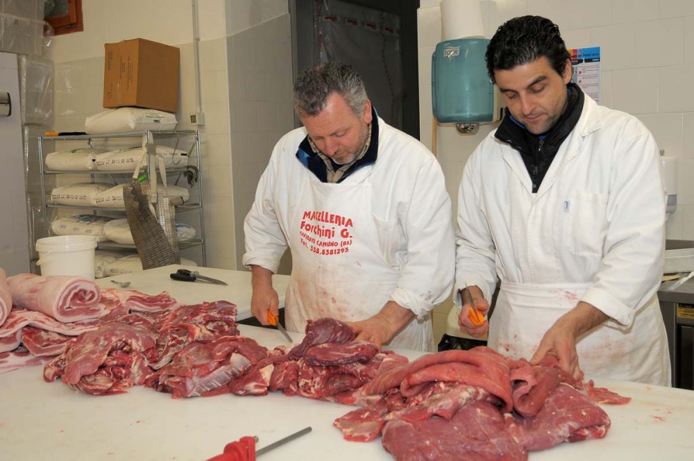 La vita intreccia i destini degli uomini, e delle cose, con una perizia e un’imprevedibilità da fare impallidire il più estroso dei romanzieri. Come potrebbero altrimenti incontrarsi uno dei norcini più capaci della Val Camonica e un imprenditore appassionato di endurance equestre? Carlo Gervasoni, questo il nome dell’imprenditore, cerca un posto per il rimessaggio dei suoi cavalli. Vanni Forchini nella sua macelleria di Cividate Camuno insegue il sogno di potersi dedicare pressoché esclusivamente alla produzione di grandi salumi. Lo fa già intendiamoci, e bene, appare ben presto nel Golosario di Paolo Massobrio, complice quel Riccardo Lagorio che è la persona a raccomandarmi una prima visita al negozio di Vanni. Nasce subito una conoscenza che va oltre il semplice rapporto fornitore/cliente, nascono le conversazioni, i commenti sul suo lavoro in bilico tra il recupero delle tradizioni camune e la voglia di sperimentare, frenata dai tempi, dal luogo. Vanni un giorno mi presenta un ragazzo sorridente: Maurizio Alberti, genero di Carlo ed estimatore del suo lavoro di norcino, mi parla di un luogo, un agriturismo: Maurizio vuole un poco alla volta piantumare meli, coltivare frutti di bosco, proporre una ristorazione che utilizzi materie prime del territorio come fa lui per i propri salumi. Da quei giorni passano circa 2 anni, poco più di 3 dall’inizio del tutto, ed è un piacere ritrovarli insieme a dare corpo e forma a salami, coppe, pancette, slinzeghe e bresaole sotto il nome unificatore, e perdonatemi un poco da Mulino Bianco, di Antichi Sapori Camuni.