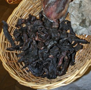 mia distrazione e vi assicuro che ne valeva la pena, poco importa il freddo pungente dell’esterno che bastava assistere ad alcuni degli scambi tra i partecipanti “ti porto del formaggio ma tu fammi assaggiare quel vino …” per riappacificarsi, anche solo per quelle brevi ore, con buona parte del nostro mondo. Vi dirò allora della berna, proposta dall’azienda agricola Fless, che faceva mostra di sé tra un violino e uno speck artigianale, quanto meno la curiosità di chiedere cosa fossero quelle sottili strisce di carne scura con un profumo che faceva intuire la concia prima dell’essiccatura.