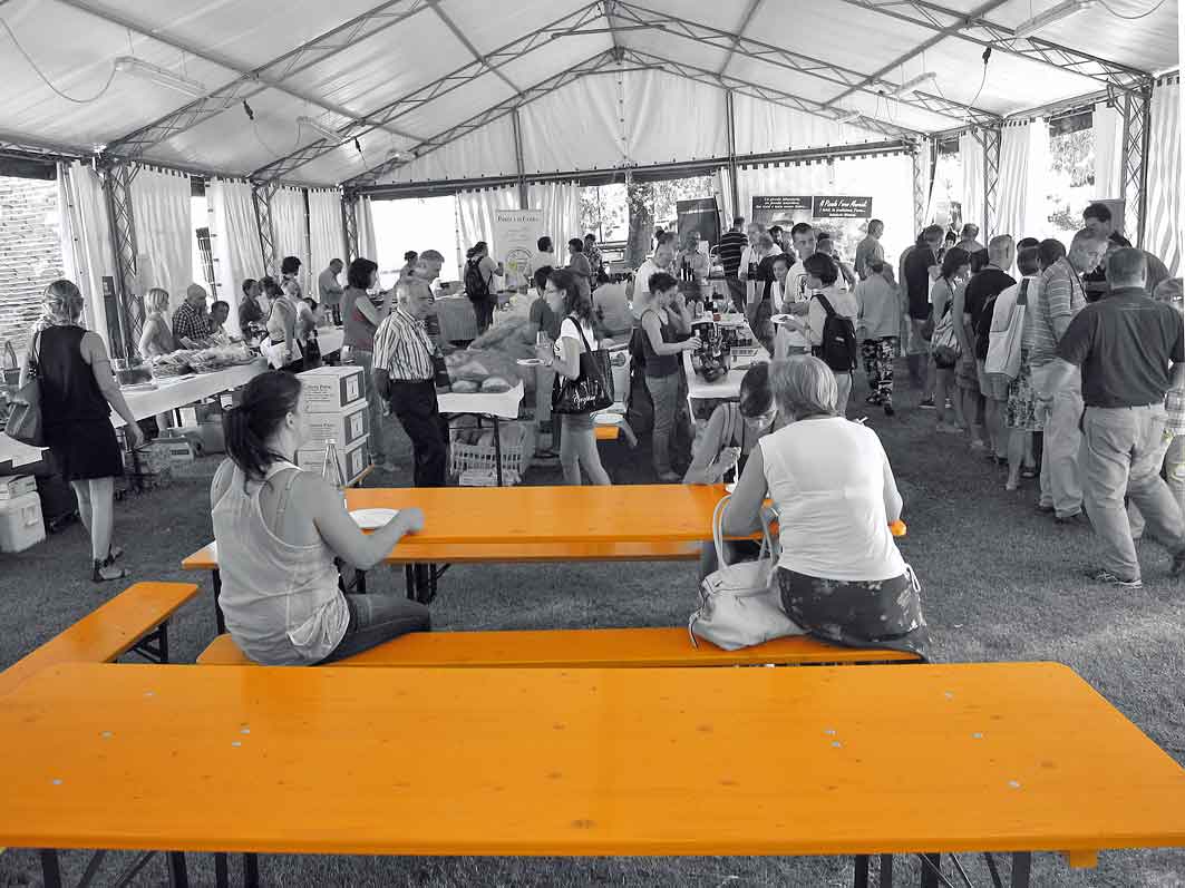 Dicevo della mia piccola partecipazione a due momenti di confronto e dibattito all’interno della giornata, il primo dedicato all’olio extravergine di oliva di qualità con, nell’ordine d’intervento, Fabio Forlani – Az. Agricola Natale Forlani -, Giorgio Tonti – Collenobile – e Patrizia Rampa – Il Brolo -. Assaggi di oli prodotti dalle 3 aziende, commenti, informazioni, seguite da un attento gruppo di persone ai margini di uno dei boschetti dell’azienda Trevisani, splendidi “padroni di casa”. Tra gli argomenti toccati l’ancora scarsa cultura dell’olio tra i consumatori, la necessità di normative che li tutelino dalle tante proposte del mercato che sotto l’etichetta “extravergine” celano prodotti poco corretti (l’eufemismo è d’obbligo), l’impegno di questi piccoli produttori per proporre oli di grande impatto organolettico e di altrettanto valido contenuto nutrizionale. Credo meriti cenno un commento di Gianni Briarava, attuale fiduciario della Condotta Slow Food Garda e valido ristoratore dell’omonimo lago, sia per la consueta schiettezza che gli conosco sia perché alla base un ragionamento che ritornerà nel secondo dibattito del pomeriggio: il senso di quella che pare una sorta di “rincorsa” a valori di polifenoli sempre più elevati, con il conseguente enfatizzarsi delle sensazioni di amaro e piccante. Indubbiamente un degustatore esperto può compiacersi di sensazioni talvolta estreme ma questi prodotti rischiano di “scoraggiare” o rendere più difficile l’approccio all’olio di qualità da parte di un’utenza media. Su questo argomento mi piacerebbe sentire l’opinione dei produttori, ricordo a tale proposito la moda, ora in declino, dei vini da “competizione”, costruiti – non credo sia questo il caso – per stupire le giurie dei concorsi internazionali con estratti, colori, concentrazioni talmente importanti da rendere difficile un secondo sorso di puro piacere, in altre parole penalizzando fortemente la bevibilità.