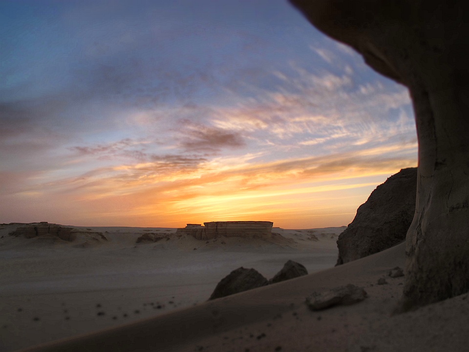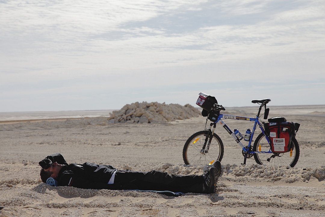 Ottenuta una serie di sponsorizzazioni, trovati partner tecnici ed enti patrocinanti la «traversata» prende il via alle 7:45 del mattino dalla piazza principale dell’oasi di Siwa, di fronte e ai piedi dell’antica città di Shali. Il primo giorno sono 270 i km percorsi, di cui gli ultimi 90 a tempo di record, in sole 3 ore per evitare il «coprifuoco» imposto dai militari in quella zona. Il secondo giorno vengono affrontati i restanti 150 km, il terreno è più aspro, con tratti in salita e vento a favore, il vento è stata una delle tante difficoltà che hanno segnato il percorso, solo negli ultimi 60 km nonostante la direzione sia stata invertita, originariamente era Bahariya-Siwa, nel tentativo di sottrarsi alle folate contrarie. Circa 7 le ore di riposo complessive.