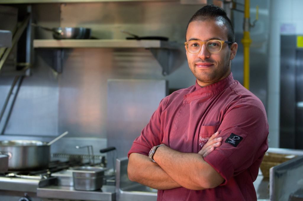 Poi, un tassello alla volta, il quadro si ricompone, anzi si arricchisce inaspettatamente. Una telefonata a Stefania Reali, Cosa tiene accese le stelle, azienda che questo autunno riprenderà il suo percorso dopo l’incendio che l’ha di fatto distrutta – nei muri non certo nello spirito – ormai ai piedi del Castello e la prima buona notizia: «Stefania, per caso quel miele di cui parlavi?», «Sì certo, l’ho con me, un millefiori di montagna con una nota caratterizzante data dalla fioritura del castagno…». Il vasetto è ora nelle mani di Augusto: «Perfetto, anche quella lieve nota amaricante che desideravo…». La fonduta che diventerà spuma è pronta, base una formaggella valtrumplina affinata in miniera, esperimento e vanto di Formaggi Trevalli Zanini, storici stagionatori in quel di San Colombano. L’ha procurata Chiara Zanini, presente in rappresentanza del Consorzio di Tutela del Nostrano Valtrompia DOP e del suo presidente Mauro Beltrami.