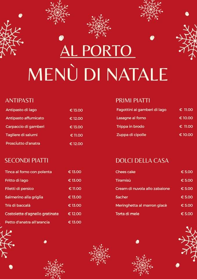 Ristorante Trattoria al Porto, storico locale di Clusane, Iseo, gestito dalla famiglia Bosio sino dalla fine dell’800. Lo si trova in piazza Porto dei Pescatori, in questo caso la proposta conta su più piatti con cui comporre il proprio menu di Natale. Il numero di riferimento per la prenotazione è il +39 030 989014
