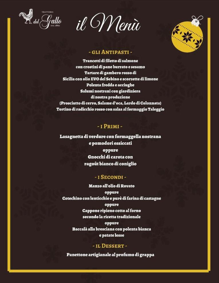 Trattoria del Gallo, Onofrio, Giuliano e Giovanna, sala e cucina, gli «animatori» di questo locale franciacortino in via Cantine 10 a Rovato, propongono un menu d’asporto che inizia in bilico tra moderata innovazione e tradizione in un crescendo che porta a celebrare pressoché integralmente quest’ultima nella proposta dei secondi. Rispondono al +39 030 7240150