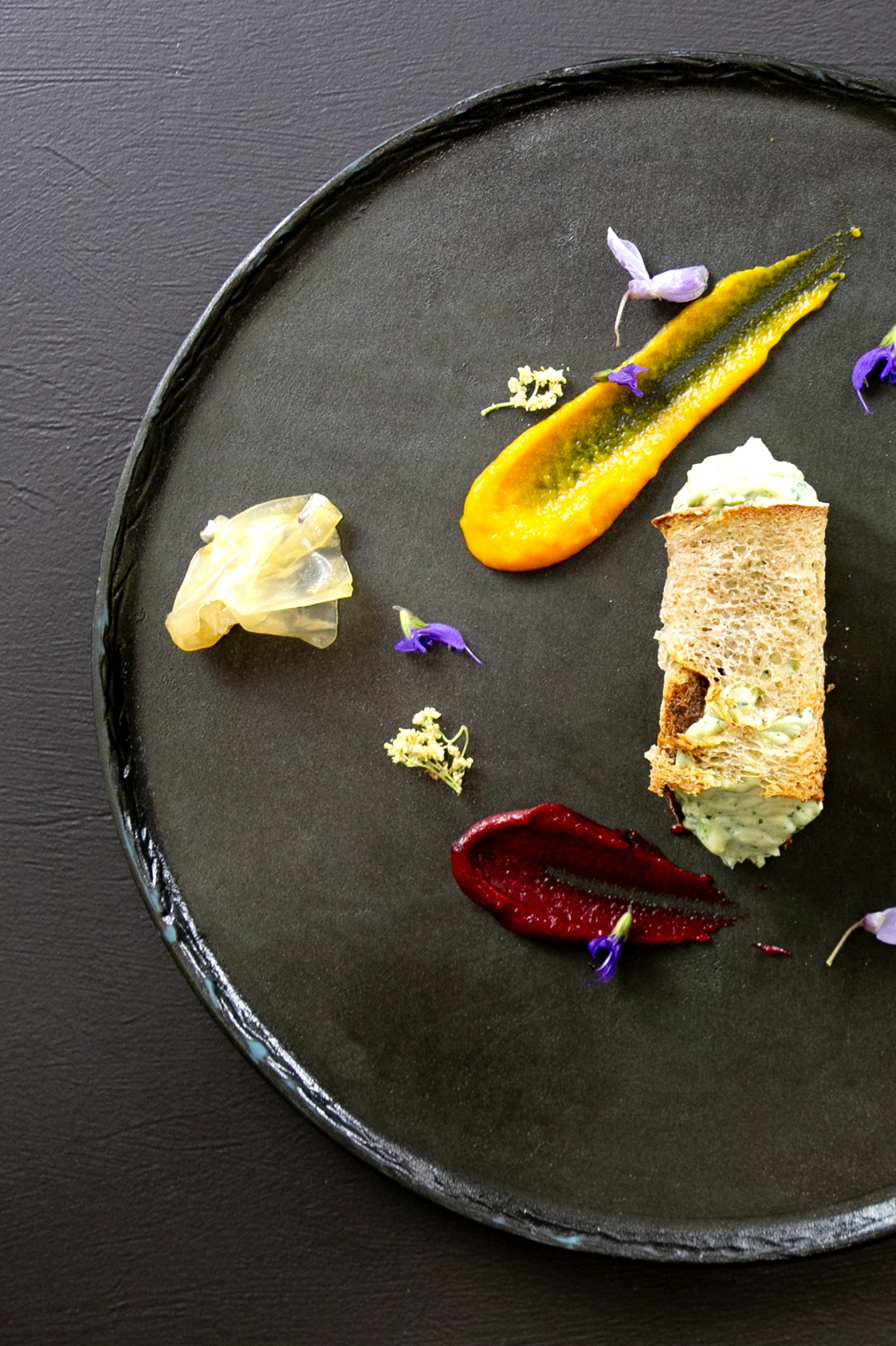 Antipasto: rapa rossa , caprino , erbe selvatiche