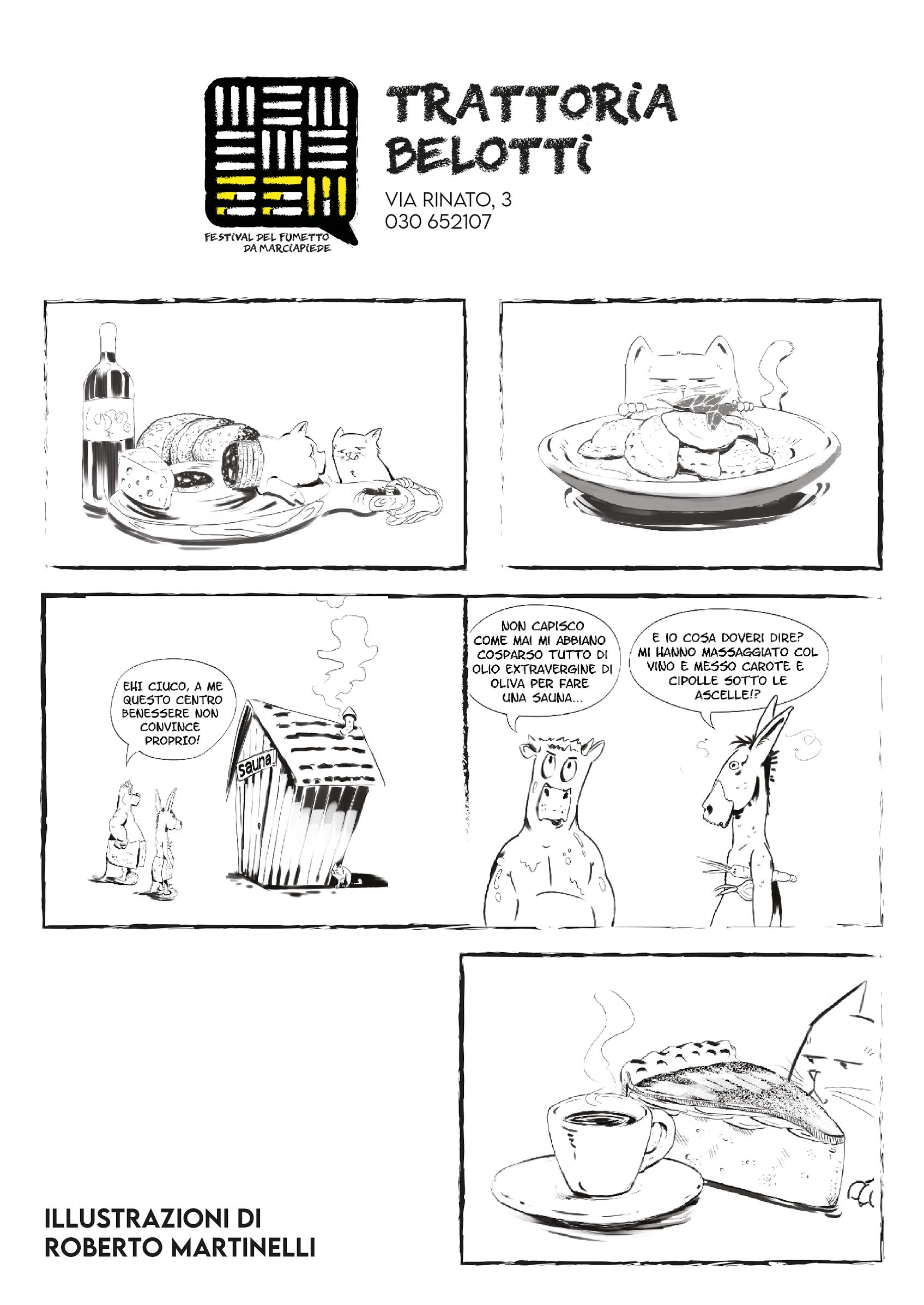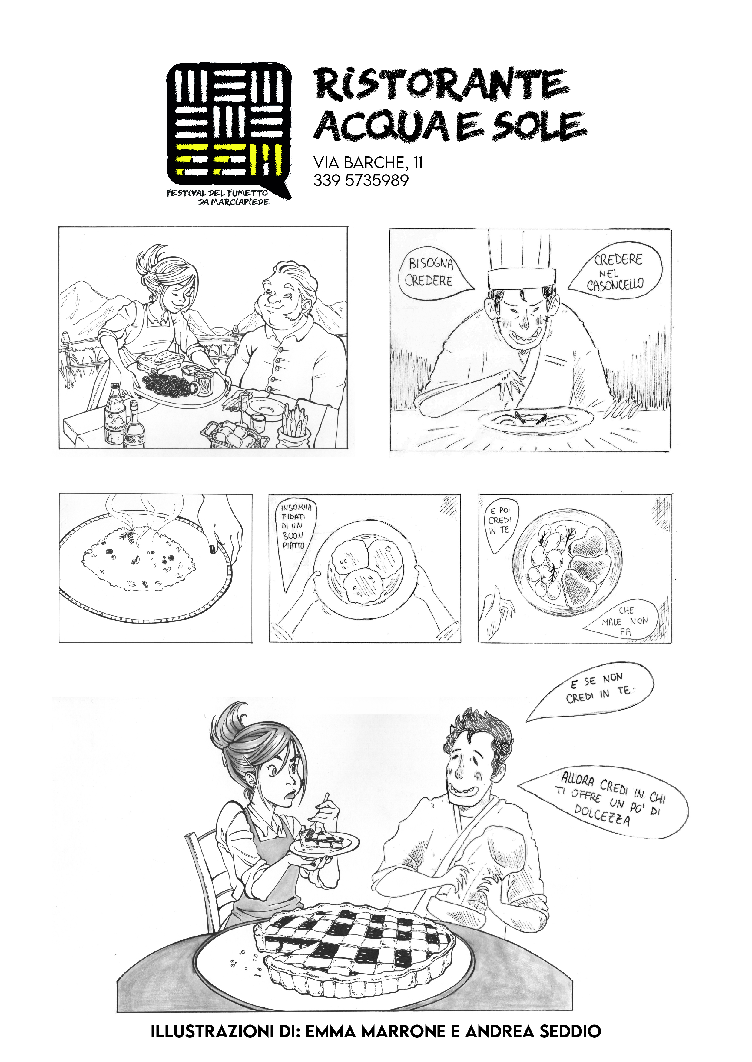 Tornando al Festival è obbligo chiedere direttamente al suo Direttore Artistico qualche notizia, qualche dettaglio su questo rapporto, e su come è stato declinato in questa prima occasione: «Innanzitutto l’intenzione è quella di dare continuità al tutto, trovando nel futuro nuove formule per descriverlo, siamo al momento riusciti, in tempi decisamente brevi e in una situazione come quella attuale, a coinvolgere alcuni ristoranti locali chiedendo di proporre un menu dedicato e descritto non attraverso le consuete parole ma con l’uso del fumetto, coinvolgendo così i disegnatori ma anche il cliente finale che deve comunque interpretare dei segni grafici…» ma Arrigoni prospetta in futuro un ribaltamento dello schema con menu, proposte culinarie che saranno ispirate a dei fumetti, che prenderanno direttamente forma da quei segni…