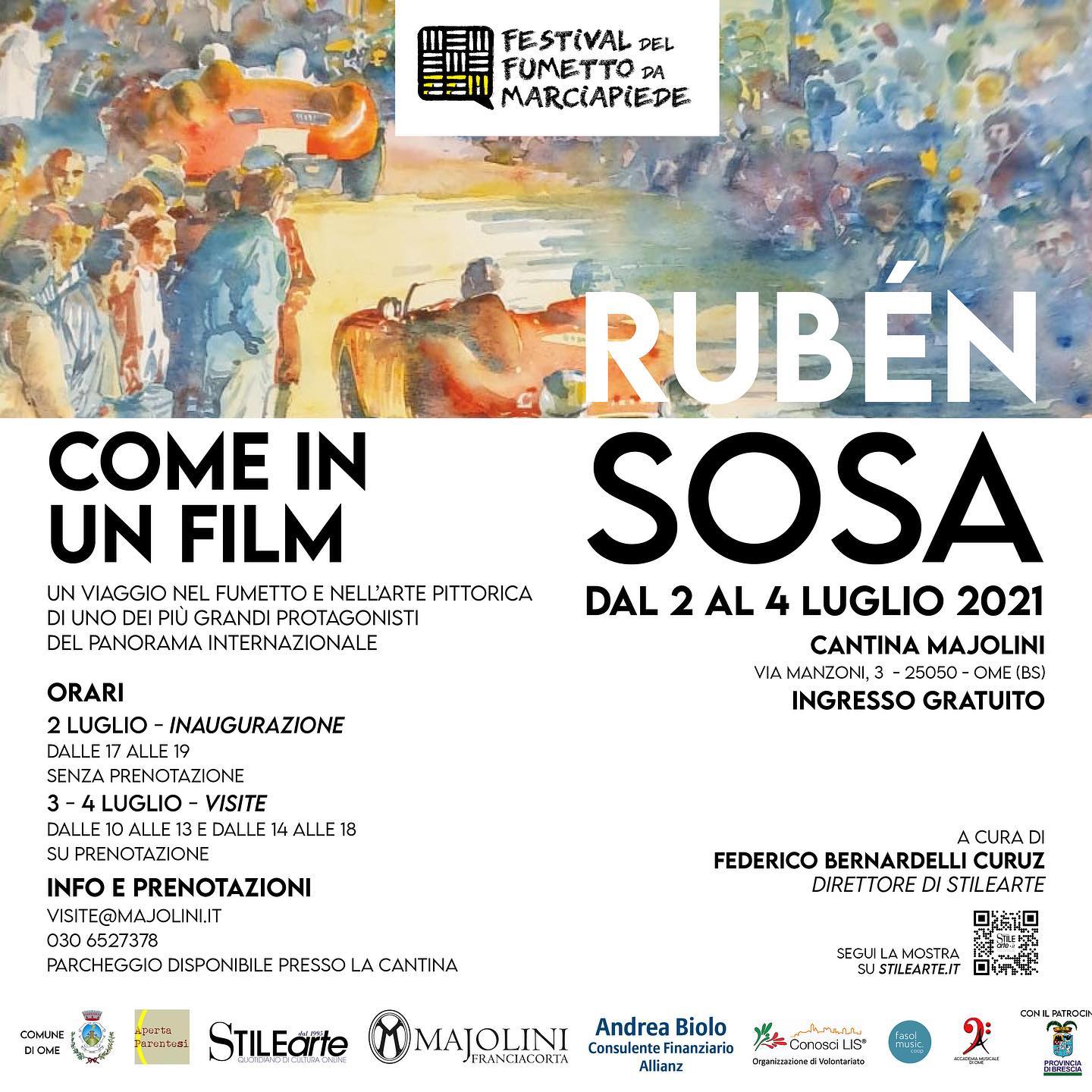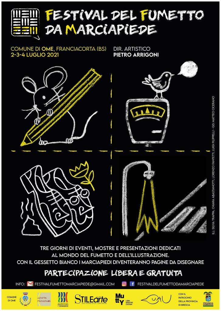 Ome, Franciacorta, dal 2 al 4 di questo infuocato mese, ospita la prima edizione del Festival del Fumetto da Marciapede, sostenuto dal Comune su un’idea partorita dalla magmatica mente di Pietro Arrigoni, regista teatrale, formatore, docente, che ne cura la direzione artistica. Non parlerò, altri con altre competenze lo hanno già fatto, del Festival nel suo complesso o della contemporanea presenza della mostra Come in un film dedicata al mio conterraneo Rubén Sosa, che ebbi il piacere di conoscere nel suo periodo bresciano nel corso di una rassegna dedicata a Bruno Bozzetto, erano i tempi della nomination all’Oscar di Cavallette, a cui contribuii minimamente. La mia attenzione, come prevedibile, è stata colpita dal desiderio di Pietro Arrigoni di esplorare, almeno inizialmente, all’interno del Festival il rapporto tra cibo e fumetto. Sempre sull’onda di questo rapporto la Cantina Majolini, che ospita peraltro la Mostra di Sosa, ha realizzato con il permesso della vedova dell’artista una contenuta tiratura di Franciacorta DOCG con etichetta dedicata.