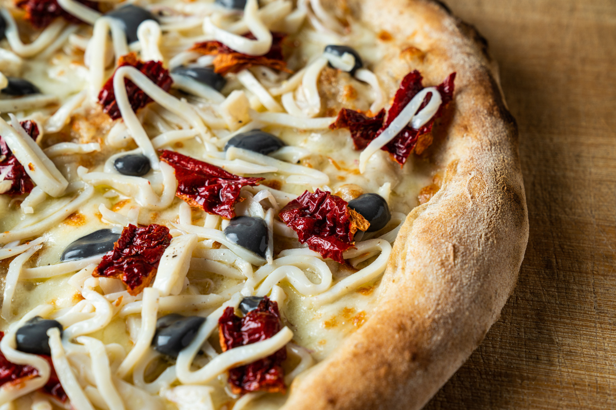 Ed eccoci alle pizze, ne ordiniamo due che dividiamo come accade da tempo, la grammatura è quella serale, optiamo per una Seppia e il suo nero, fiordilatte e peperone crusco, realizzata in collaborazione con lo chef peruviano Virgilio Martinez. «Tagliatelle» di seppia cotta a bassa temperatura, buon fiordilatte, il sempre incredibile peperone crusco lucano, prodotto agroalimentare tradizionale della Basilicata. L’impasto? La cottura è perfetta, l’esterno rugoso, il cornicione presente ma non troppo pronunciato, miscela di farine di tipo 1 più un’aggiunta di farina di monococco. Non ho consumato coltelli per tagliarla, non l’ho trovata gommosa, non ho fatto fatica alcuna a digerirla. Un miracolato? Tornando alla pizza: più che buona.